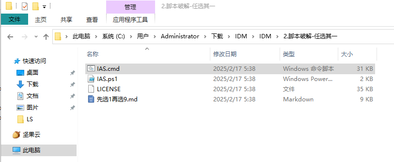 4、破解IDM,打开“脚本破解任选其一”文件夹,右键以管理员身份运行